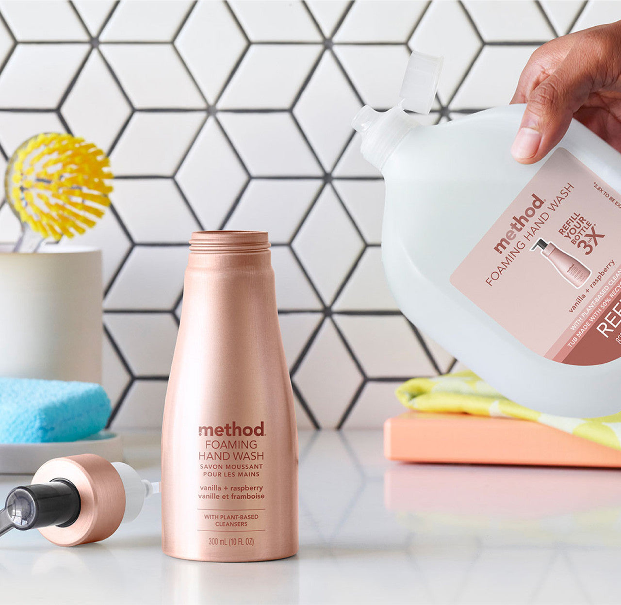 • Sleek. counter-worthy bottles designed to be refilled + flatter your fixtures for years.